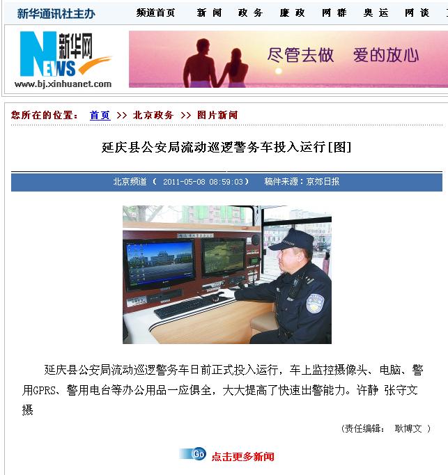新華網(wǎng)新聞報道:延慶縣公安局流動巡邏警務(wù)車投入運(yùn)行