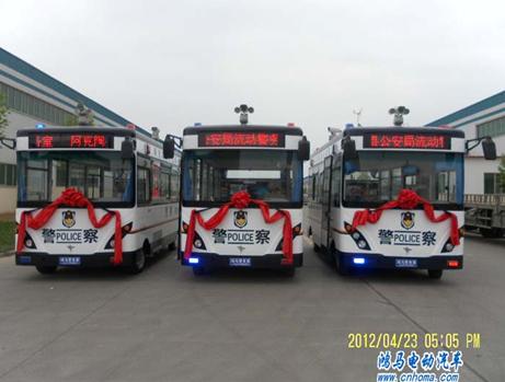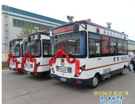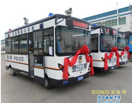 2012年4月23日下午,在河南森源鴻馬電動(dòng)汽車公司長葛生產(chǎn)基地舉行新疆阿克陶縣鴻馬流動(dòng)警務(wù)室發(fā)車儀式。這是繼在新疆焉耆縣公安局、博湖縣公安局、烏恰縣公安局、疏勒縣公安局等之后,再次發(fā)往新疆的3臺(tái)流動(dòng)警務(wù)室。