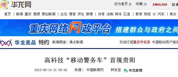 2012年6月13日20時(shí)至6月14日清晨,貴陽(yáng)市公安局在全市范圍內(nèi)開(kāi)展了“雷霆行動(dòng)”第三戰(zhàn)役第二次集中統(tǒng)一行動(dòng)。首次亮相貴陽(yáng)街頭的“移動(dòng)警務(wù)車(chē)”,不時(shí)引來(lái)市民駐足觀望。據(jù)了解,新增上崗的兩臺(tái)“移動(dòng)警務(wù)車(chē)”分別停放于筑城廣場(chǎng)和火車(chē)站廣場(chǎng)。