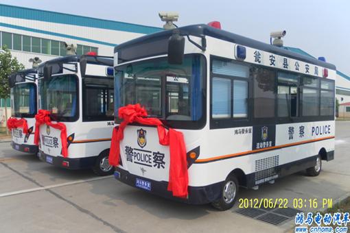 2012年6月22日下午,在河南森源鴻馬電動汽車公司舉行貴州甕安縣鴻馬移動警務(wù)室發(fā)車儀式。