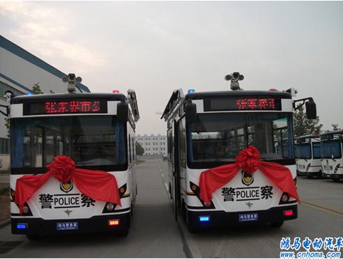 10月19日上午,在河南森源鴻馬電動(dòng)汽車公司舉行湖南張家界市流動(dòng)警務(wù)室發(fā)車儀式。