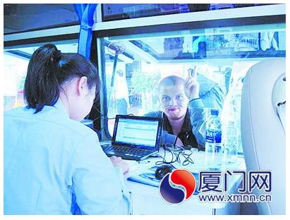 臺(tái)海網(wǎng)訊 據(jù)廈門日?qǐng)?bào)報(bào)道 11月1日上午,翔安公安分局新店派出所移動(dòng)警務(wù)車開進(jìn)廈門大學(xué)翔安校區(qū),為在翔安校區(qū)工作和學(xué)習(xí)的境外師生提供辦理臨時(shí)住宿登記的上門服務(wù),現(xiàn)場(chǎng)核對(duì)境外師生的證照,打印出境外人員臨時(shí)住宿登記表(上圖)。出入境處派員現(xiàn)場(chǎng)指導(dǎo)登記工作,這是移動(dòng)警務(wù)車?yán)^10月31日再次開進(jìn)校園為境外師生服務(wù)。