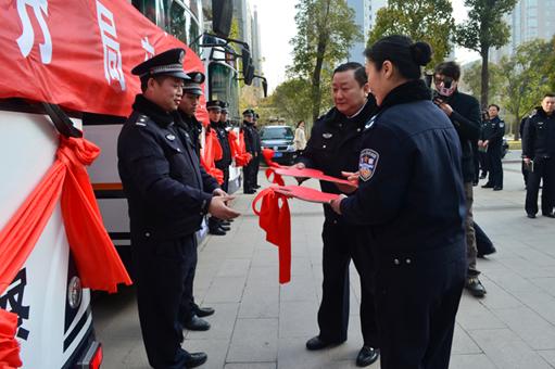 鄭東分局張局長向轄區(qū)派出所派發(fā)象征流動警務(wù)室的“金鑰匙”