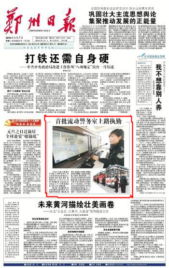 轉(zhuǎn)載鄭州日報:首批鴻馬流動警務(wù)室上路執(zhí)勤