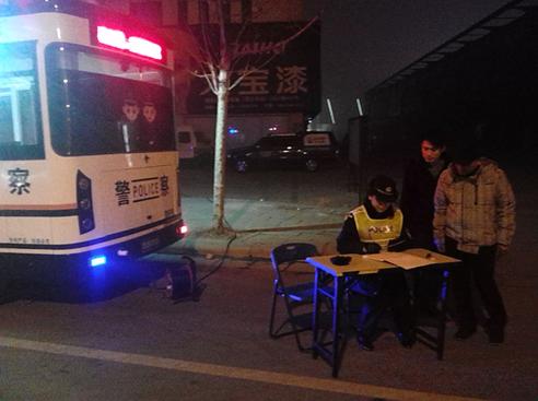 鄭東公安分局如意湖治安中隊民警深夜在農(nóng)業(yè)路與商都路交叉口設(shè)卡辦公