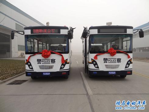 1月10日下午,在河南森源鴻馬電動汽車公司舉行廣東佛山鴻馬流動警務(wù)室發(fā)車儀式。