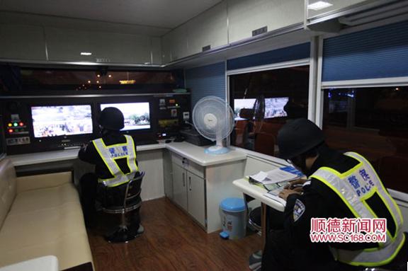 記者在現(xiàn)場看見,移動(dòng)警務(wù)室的外觀如同一部中巴車,車牌和車身上標(biāo)示了顯眼的移動(dòng)警務(wù)室聯(lián)系電話:25569110,警示燈閃爍不停,在夜間尤為亮眼。車頭和車身一側(cè)還安裝了LED顯示屏,滾動(dòng)播放警務(wù)信息和時(shí)間!斑@輛車稍微比普通中巴車長一點(diǎn),車身長6米,寬2.4米,高1.8米,配有3G無線傳輸,可直接連接110指揮中心!眻(zhí)勤民警告訴記者,這輛移動(dòng)警務(wù)室是集無線監(jiān)控、高清攝像、對講及規(guī)程無線傳輸?shù)裙δ苡谝簧淼男滦途瘎?wù)辦公設(shè)備,內(nèi)設(shè)警務(wù)工作、設(shè)備操作臺(tái)。麻雀雖小五臟俱全,車內(nèi)設(shè)有兩個(gè)辦公電腦、辦公桌、檔案柜、醫(yī)療箱、警用裝備等,堪稱“流動(dòng)的派出所”。警務(wù)室出現(xiàn)在街頭引起了眾多市民的圍觀,“剛參觀了車內(nèi)的設(shè)備,感覺很先進(jìn),派出所將警務(wù)室前移到街面,不僅便于民警快速破案,對我們老百姓而言更有安全感!笔忻襦囅壬χf道。