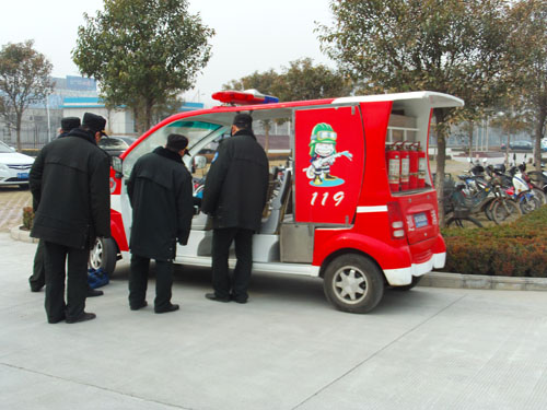 3月9日上午9點,鄭州市各區(qū)消防單位代表在我公司技術(shù)專員等人的陪同下參觀采購由我公司森源鴻馬電動汽車生產(chǎn)的電動消防車,駐足參觀了電動觀光車流動警務(wù)室(近期銷售量增大覆蓋北京、鄭州、上海、天津、廣州深圳等全國各地移動警務(wù)室)。我公司技術(shù)員向領(lǐng)導(dǎo)詳細介紹了鴻馬電動消防車的功能優(yōu)勢環(huán)保性能等情況。