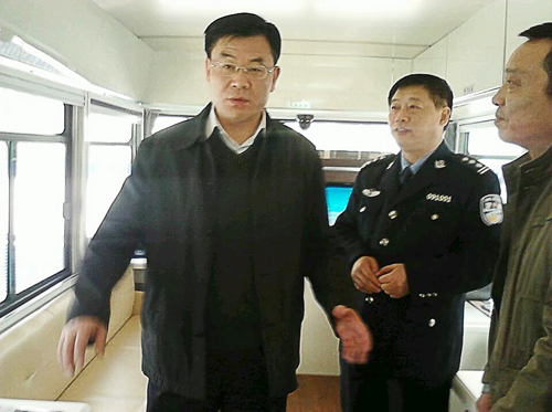 鹽城市公安領(lǐng)導(dǎo)在流動(dòng)警務(wù)室上體驗(yàn)產(chǎn)品性能