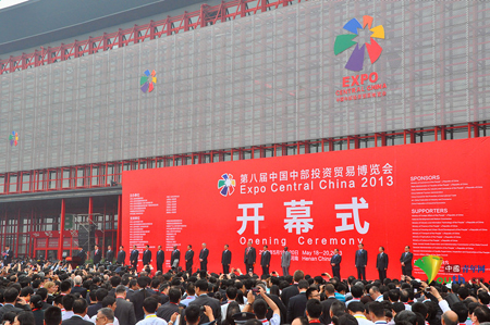 2013年5月18日,鄭州國(guó)際會(huì)展中心迎來(lái)了第八屆中國(guó)中部貿(mào)易投資博覽會(huì)。上午9時(shí),中共中央政治局委員、國(guó)務(wù)院副總理汪洋宣布第八屆中國(guó)中部投資貿(mào)易博覽會(huì)隆重開(kāi)幕。