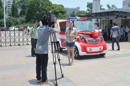 上海閘北區(qū)消防支隊消防宣傳車交接儀式