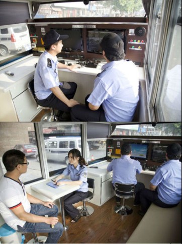 澤國派出所警務(wù)工作人員在移動警務(wù)室上辦公