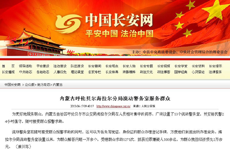 轉(zhuǎn)載中國(guó)長(zhǎng)安網(wǎng):內(nèi)蒙古呼倫貝爾海拉爾分局移動(dòng)警務(wù)室服務(wù)群眾