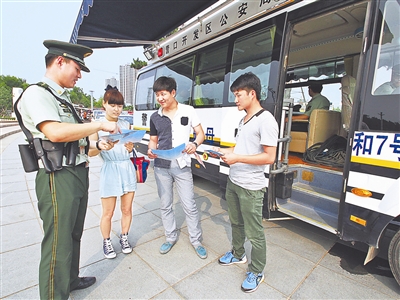 圖為執(zhí)勤警官為游客講解防盜常識(shí)