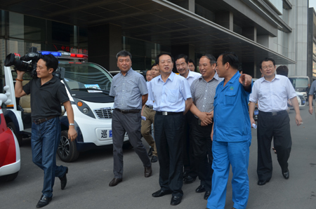 8月6日上午,河南省委常委、鄭州市委書(shū)記吳天君一行在鄭州市經(jīng)濟(jì)開(kāi)發(fā)區(qū)參觀了河南森源鴻馬電動(dòng)汽車(chē)有限公司旗下的移動(dòng)警務(wù)室、城管執(zhí)法車(chē)、消防巡邏車(chē)、網(wǎng)格化巡邏車(chē)、環(huán)衛(wèi)清洗車(chē)等多款經(jīng)典產(chǎn)品。
