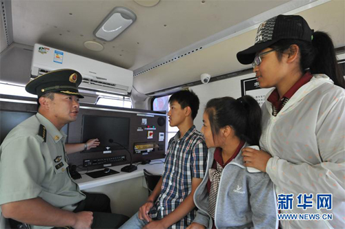其間,官兵們向游客講解了新式鴻馬移動警務室的功能及作用,讓市民深切體驗到了科技強警在警務改革中的巨大作用。據(jù)邊防官兵介紹,新式流動警務室又稱“平安航母”警務巡邏車,具有遠程控制監(jiān)控錄像、現(xiàn)場監(jiān)控傳輸?shù)榷喙δ,可以實現(xiàn)執(zhí)勤民警在各個旅游景區(qū)進行現(xiàn)場指揮調(diào)度、接處警登記反饋、信息查詢、案件處理、糾紛調(diào)解、便民服務等一系列公安基礎業(yè)務,極大地方便了往來游客,較好地實現(xiàn)了“一警多能、多警聯(lián)動、職能交叉、綜合管控”的目標。
