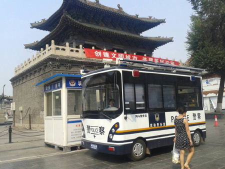 山西太原:鴻馬“移動警務(wù)室”上路執(zhí)勤 城隍廟安保再添新利器