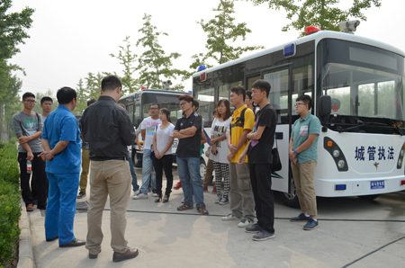 來(lái)到河南森源鴻馬電動(dòng)汽車(chē)有限公司,興高采烈的河工大學(xué)子在公司副總邢會(huì)敏的指導(dǎo)下,參觀了移動(dòng)警務(wù)室、城管執(zhí)法車(chē)、移動(dòng)戶政室、消防體驗(yàn)館、消防巡邏車(chē)等產(chǎn)品,一名學(xué)生代表說(shuō):“以前只是知道鴻馬公司是個(gè)有實(shí)力的企業(yè),在鄭州火車(chē)站及很多街道辦事處見(jiàn)過(guò)很多鴻馬公司生產(chǎn)的移動(dòng)警務(wù)室和消防巡邏車(chē),但不了解鴻馬公司的生產(chǎn)工藝流程和生產(chǎn)經(jīng)營(yíng)模式,今天終于有機(jī)會(huì)一窺究竟,能夠全面細(xì)致的和企業(yè)接觸,將對(duì)我們今后學(xué)習(xí)工業(yè)設(shè)計(jì)有很大的促進(jìn)作用。