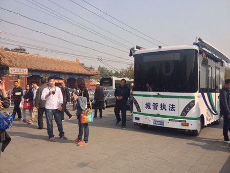 近日,每天來北京故宮博物館的游客達萬人以上,為保證游客的出行需求,西城城管局依托購置的鴻馬城管執(zhí)法車,開展便民利民活動,為游客提供信息咨詢服務(wù),受到了國內(nèi)外游客的一致好評。