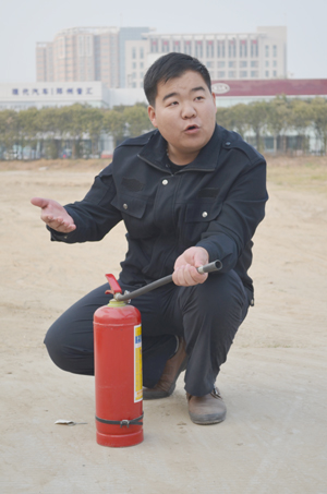 公司保衛(wèi)處員工給大家講解如何使用滅火器