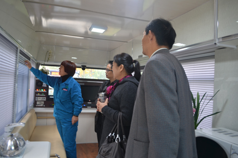 在公司副總王秋榮的陪同下,鄭州市工信委領(lǐng)導(dǎo)一行參觀了公司生產(chǎn)車間、整車展廳,并饒有興致的登上鴻馬移動(dòng)警務(wù)室進(jìn)行實(shí)際體驗(yàn)。