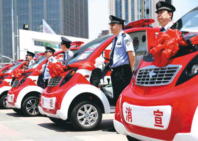6月3日,上海市閘北區(qū)消防支隊(duì)將12輛特制多功能消防巡邏車發(fā)放給全區(qū)街道和鄉(xiāng)鎮(zhèn),這些消防車配有6個(gè)滅火器、自帶100公升水,可有效填補(bǔ)大型消防車無法進(jìn)入狹小社區(qū)弄堂的空白。