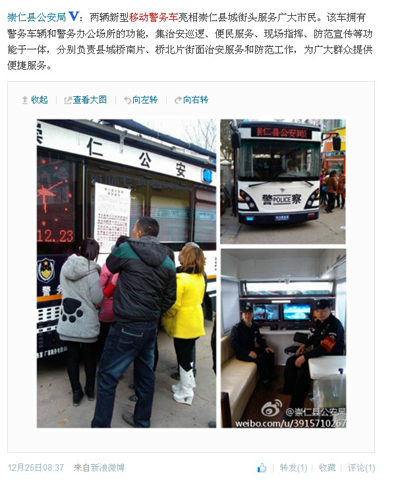 相關(guān)新聞報(bào)道: 江西南昌鴻馬流動警務(wù)室發(fā)車——打造服務(wù)型工作模式 |