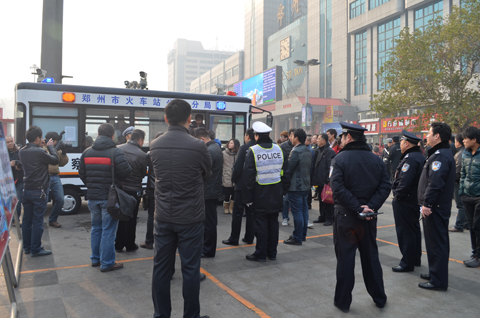 鄭州市政法委書記公安局局長黃保衛(wèi)(前排左一)檢查春運安全工作
