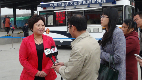 據(jù)了解,昨日這起案件的審理,是鄭州市法院系統(tǒng)首輛巡回審判車的首次開庭使用。