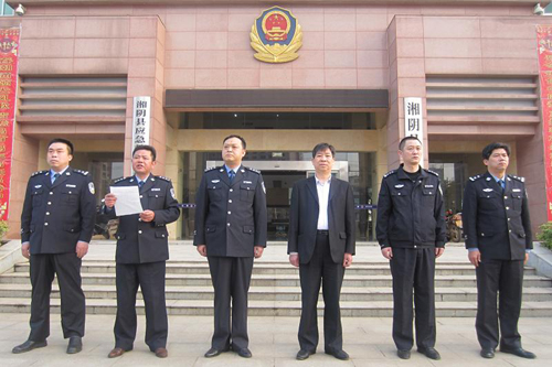曙光初照演兵場。3月26日上午7時30分,湘陰縣局在該局指揮中心大樓前坪舉行湘陰縣移動警務平臺啟動儀式。啟動儀式由該局黨委副書記、副局長兼政治部主任胡清安主持,副局長張紅波為儀式致辭,中共湘陰縣委常委、政法委書記吳學兵宣布平臺正式啟動,湘陰縣人民政府副縣長、公安局局長李自然,政委余宏,副局長李太虎出席啟動儀式,該局巡警、特警、治安大隊和城關、江東派出所百余名警力參加了儀式。
