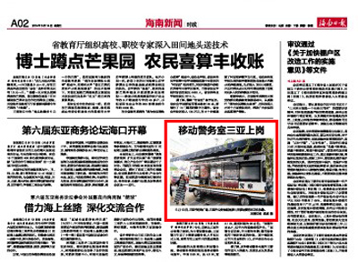 海南日報(bào)報(bào)道:移動(dòng)警務(wù)室三亞上崗