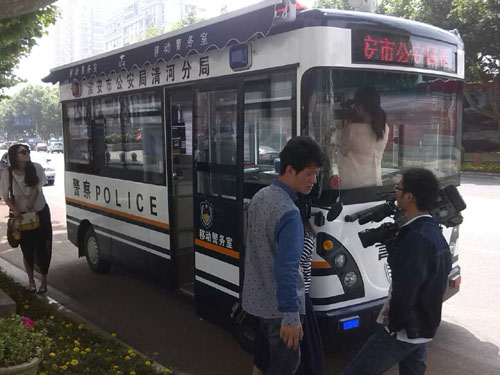 6月5日上午,一臺(tái)外觀新穎、功能齊全的方型警車在江蘇省淮安市清河區(qū)新亞國(guó)際大廈亮相,吸引了電視臺(tái)記者和路人的目光,好奇的記者和群眾先后登上警車咨詢這臺(tái)警車的作用。