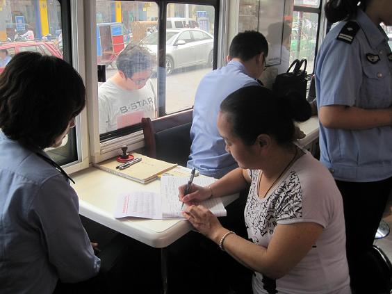 “便民服務(wù)還真是便民,我兒子的婚遷手續(xù)這么快就辦好了,擱到以前要跑社區(qū),找片警,還得所長(zhǎng)簽字,最少要2天時(shí)間,這個(gè)流動(dòng)警務(wù)車(chē)上才十幾分鐘就全辦好了,真方便!”西城街道民族社區(qū)居民蓮女士懷里抱著孫子,正向工作人員表示感謝。結(jié)合黨的群眾路線教育實(shí)踐活動(dòng),為了更好地為群眾服務(wù),簡(jiǎn)化辦事流程,西城街道民主派出所聯(lián)合轄區(qū)民族、信義、張莊社區(qū)設(shè)置便民服務(wù)警務(wù)車(chē),創(chuàng)新警務(wù)工作機(jī)制,為居民提供一站式零距離服務(wù)。