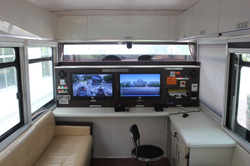 該鴻馬移動警務車具有機動性強,應用靈活的特點,車外配備有暴閃燈、強光燈、可升降360度旋轉(zhuǎn)的攝像頭和LED宣傳屏幕,配有高清150米數(shù)字監(jiān)控、夜視紅外線等功能。車內(nèi)有辦公桌椅、車載公安專網(wǎng)電腦、監(jiān)控屏、攝像頭、打印機、掃描儀等設(shè)備。執(zhí)勤官兵可以通過車載高清視頻實現(xiàn)對移動警務室周圍和車內(nèi)的實時監(jiān)控,并能通過車載公安專網(wǎng)電腦直接辦理出入境業(yè)務,使移動警務車成為流動勤務室,節(jié)約辦證時間,提高辦證效率。同時,在安保或突發(fā)事件現(xiàn)場,移動警務用車也可作為一個現(xiàn)場指揮平臺,實時收集現(xiàn)場信息,起到現(xiàn)場指揮協(xié)調(diào)的作用。