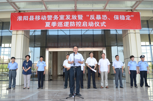 7月2日,淮陽縣公安局在淮陽縣文化藝術(shù)中心廣場舉行鴻馬移動警務(wù)室發(fā)放暨“反暴恐 保穩(wěn)定”夏季巡邏防控啟動儀式。周口市市長助理、市公安局局長姚天民,森源鴻馬公司董事長孔慶珍及淮陽縣四個班子相關(guān)領(lǐng)導(dǎo)出席此次移動警務(wù)室啟動儀式。