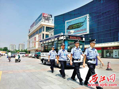 派出所警員與廣場治安員聯(lián)合巡邏。
