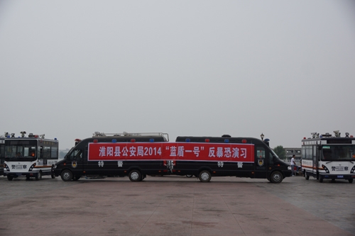 周口淮陽縣多部門聯(lián)合舉行反暴恐綜合演練 鴻馬移動警務(wù)室顯威力