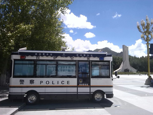 拉薩布達(dá)拉宮廣場(chǎng)啟用的這臺(tái)鴻馬移動(dòng)警務(wù)室車(chē)頂配備360度旋轉(zhuǎn)高清數(shù)字?jǐn)z像頭,并與110指揮中心聯(lián)網(wǎng),實(shí)現(xiàn)了對(duì)過(guò)往車(chē)輛、人員及各類(lèi)突發(fā)案事件的監(jiān)控取證;車(chē)身側(cè)面安裝LED顯示屏,使之可以滾動(dòng)播放宣傳圖像及各類(lèi)便民提示等,隨時(shí)隨地宣傳公安工作;車(chē)內(nèi)配備了計(jì)算機(jī)、、喊話(huà)器等執(zhí)法執(zhí)勤設(shè)備,使“移動(dòng)警務(wù)室”兼具警務(wù)車(chē)輛和警務(wù)辦公場(chǎng)所功能。目前,移動(dòng)警務(wù)室車(chē)配置在布達(dá)拉宮廣場(chǎng),有效地提高了拉薩公安的治安防控能力,及時(shí)處置各類(lèi)突發(fā)警情,執(zhí)勤民警可以第一時(shí)間參與街面封控圍堵,從而形成點(diǎn)線結(jié)合、區(qū)域覆蓋;動(dòng)靜結(jié)合、屯兵街面;快速反應(yīng)、整體聯(lián)動(dòng)的社會(huì)面防控新格局。