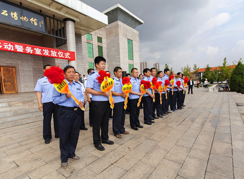 山西呂梁 12臺新型移動警務(wù)室交車啟動儀式