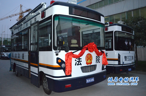 10月15日下午,湖北鐘祥人民法院訂購的鴻馬移動(dòng)法庭在鴻馬公司發(fā)車。