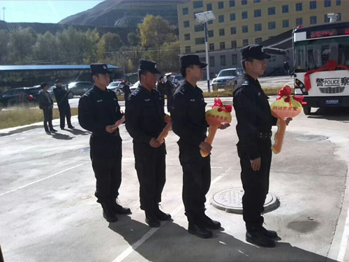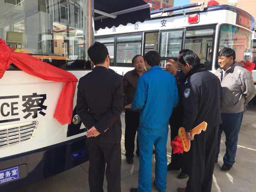 10月21日上午,在青海黃南州舉行14臺(tái)鴻馬移動(dòng)警務(wù)室交車(chē)啟用儀式。黃南藏族自治州州長(zhǎng)李忠、政法委書(shū)記、副州長(zhǎng)、州公安局局長(zhǎng)王虎成等領(lǐng)導(dǎo)出席此次配發(fā)儀式。14臺(tái)多功能移動(dòng)警務(wù)室正式投放街頭,用于強(qiáng)化街面治安巡控和反恐防暴。