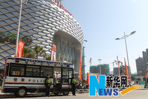 新華網(wǎng)報道:福建福清兩部鴻馬移動警務(wù)室亮相街頭 “兩節(jié)”安保添利器