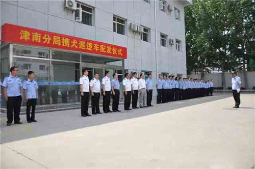 天津津南公安分局舉行鴻馬攜犬巡邏車(chē)配發(fā)儀式