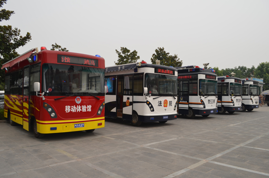 隨后,王躍華一行領(lǐng)導(dǎo)來到廣場(chǎng)展車區(qū)域,整齊排列的多款展車吸引了王躍華的目光,他親自登上鴻馬高科技移動(dòng)警務(wù)室、消防體驗(yàn)館進(jìn)行了實(shí)際體驗(yàn),并詳細(xì)詢問了產(chǎn)品性能。在參觀展車過程中,王躍華向公司副總經(jīng)理王秋榮詢問了公司相關(guān)產(chǎn)品的市場(chǎng)占有率,了解了相關(guān)展車的性能、技術(shù)參數(shù)及市場(chǎng)占有率等方面信息。