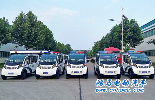 河南鄭州市5臺鴻馬電動巡邏車發(fā)車 王牌品質(zhì) 值得信賴