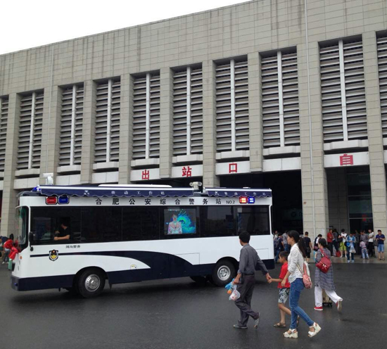 7月9日上午,一臺集巡邏防控、治安盤查、卡口執(zhí)勤、交通管理、安全宣傳、臨時休息和服務群眾等多項功能為一體的鴻馬警務移動方艙在合肥市火車站亮相執(zhí)勤。