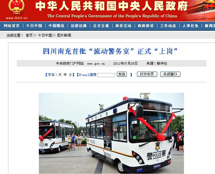 中華人民共和國政府網(wǎng)報道四川南充鴻馬流動警務室 圖1