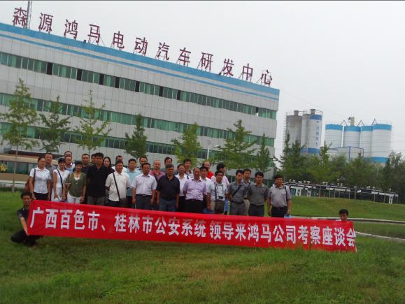 7月30日,廣西白色市公安局主任和政委帶隊(duì)、桂林市疊彩分局副局長、廣西白色市多個(gè)分局、一行26人來到森源鴻馬電動(dòng)汽車公司,實(shí)地考察鴻馬流動(dòng)警務(wù)室、流動(dòng)警務(wù)站、電動(dòng)巡邏車等新型電動(dòng)汽車。總經(jīng)理馬鴻軍、廣西地區(qū)銷售經(jīng)理王立新熱情接待了來賓一行。
