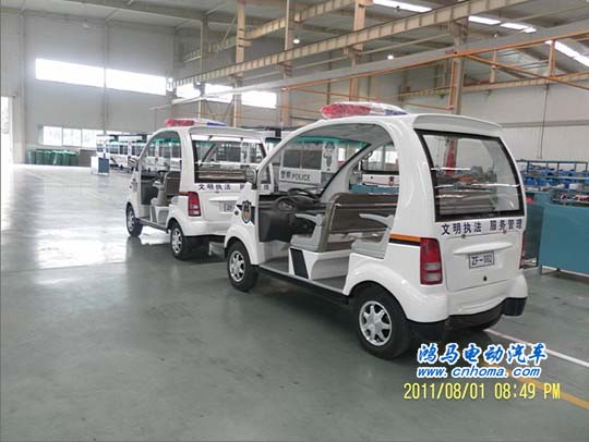 8月1日,河南許昌電動巡邏車警用巡邏車發(fā)車儀式在鴻馬電動汽車生產(chǎn)基地舉行,首發(fā)2臺電動巡邏車到許昌市東城區(qū)綜合辦執(zhí)法局。從而加大了執(zhí)法力度,提高文明執(zhí)法硬件配置。