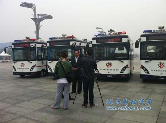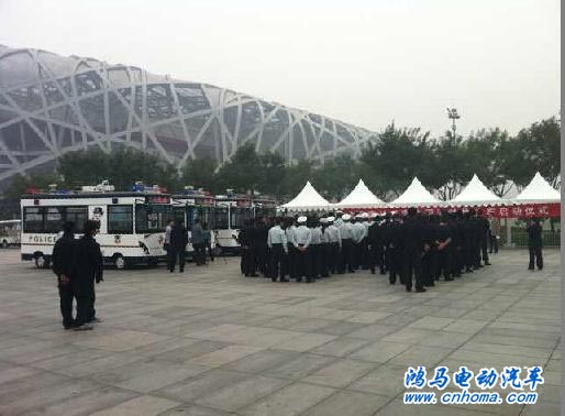 儀式上,奧林匹克公園訂購了4臺流動警務車聯合執(zhí)法警務站整齊的排放著。這四臺流動警務室是鴻馬電動汽車為北京奧林匹克公園特別定制的流動警務室,也是北京眾多流動警務室其中四輛,車內不但具有先進的3G無線視頻傳輸系統,還有3G無線網絡,警用傳輸語音網絡,GPS全球定位,執(zhí)勤巡邏軌跡播放等功能,這些現代高科技的辦公設施,極大方便了指揮中心對民警的工作調度,有效降低了公園內的犯罪率,對園內的可以人員進行身份驗證,保護園內的安全。